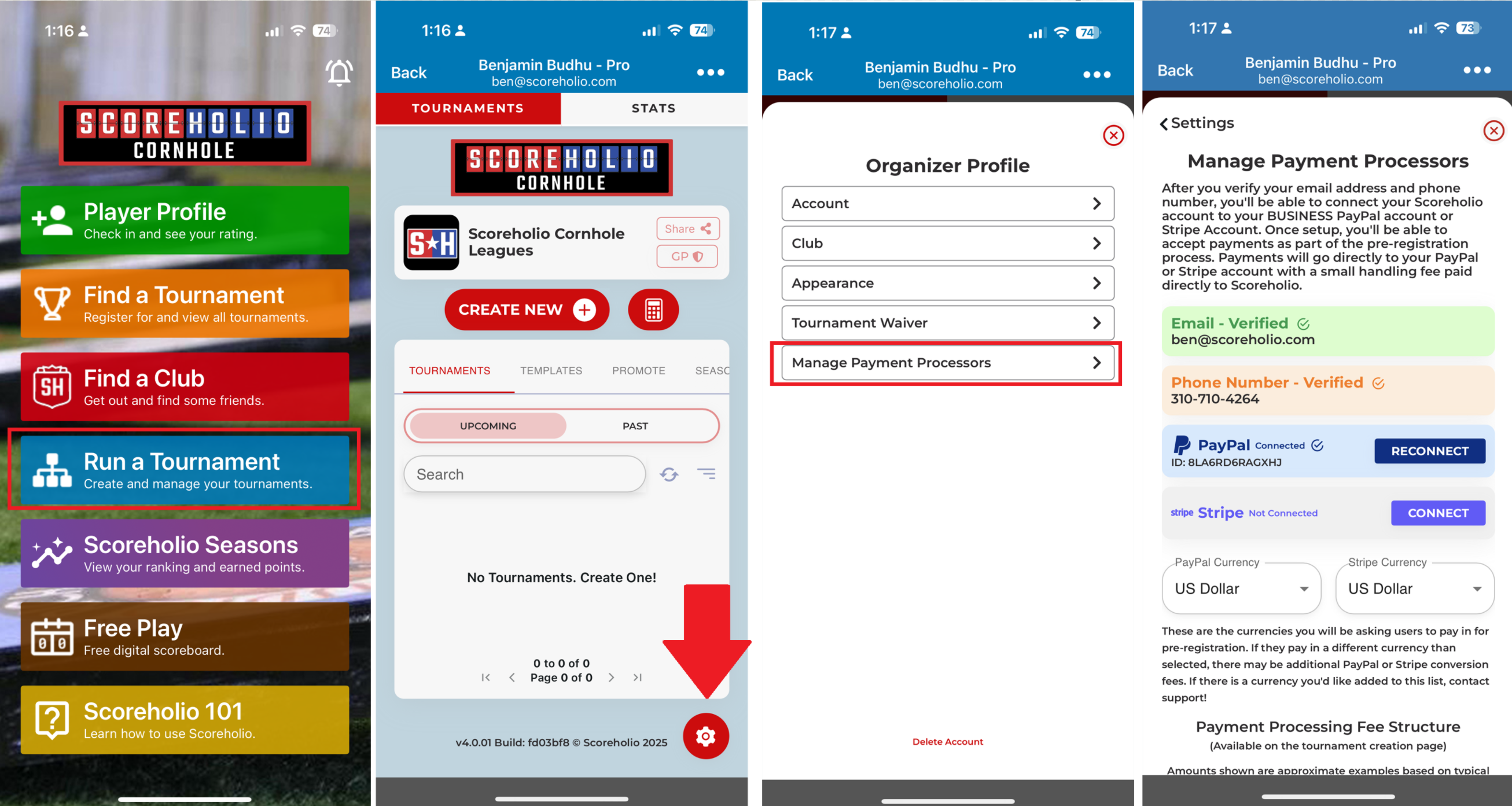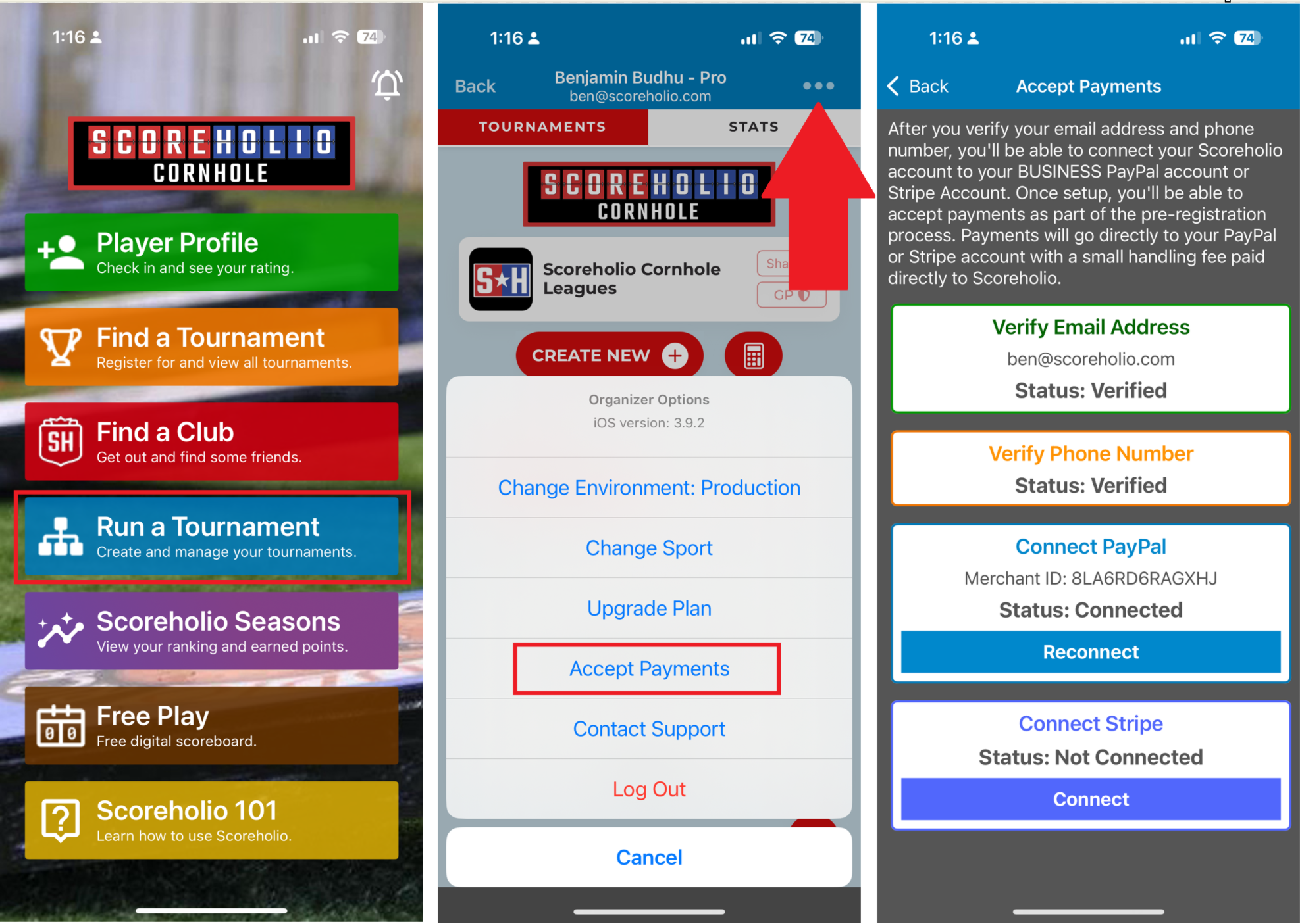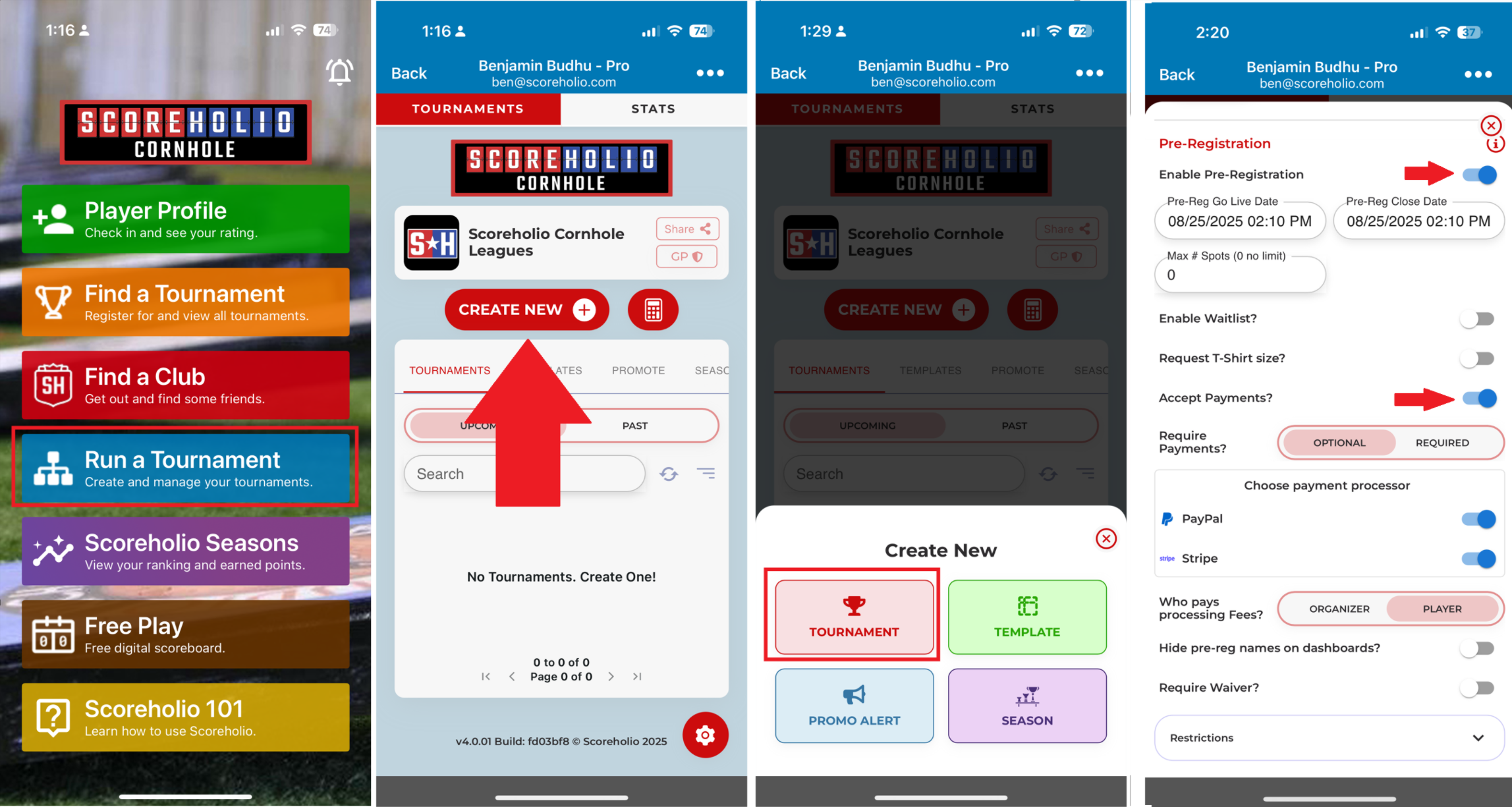 Wondering how many players will show up today? Now you don’t have to guess. With Scoreholio, players can **pre-register** and **pre-pay** for your tournament — and you can use **PayPal Business** or **Stripe** to collect the payments. Tournament organizing just got way easier!