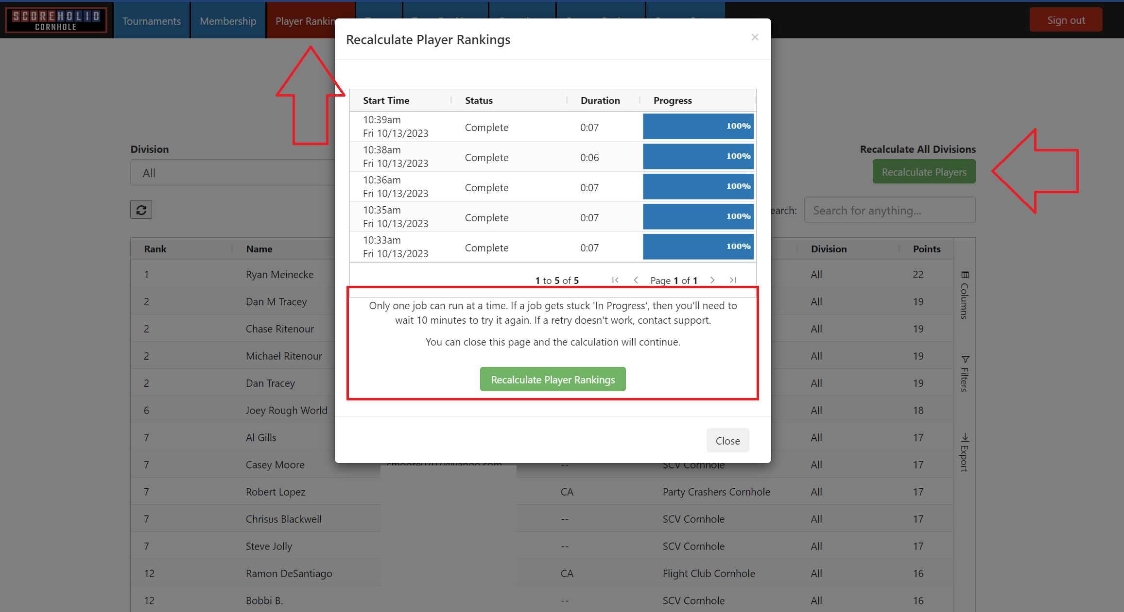 If an organizer submits a tournament to the Scoreholio Seasons portal and later finds out that a players standings or points were incorrect you can delete the tournament. This will open the tournament back up for that organizer to make their corrections and then re-submit the tournament for approval.&#x20;