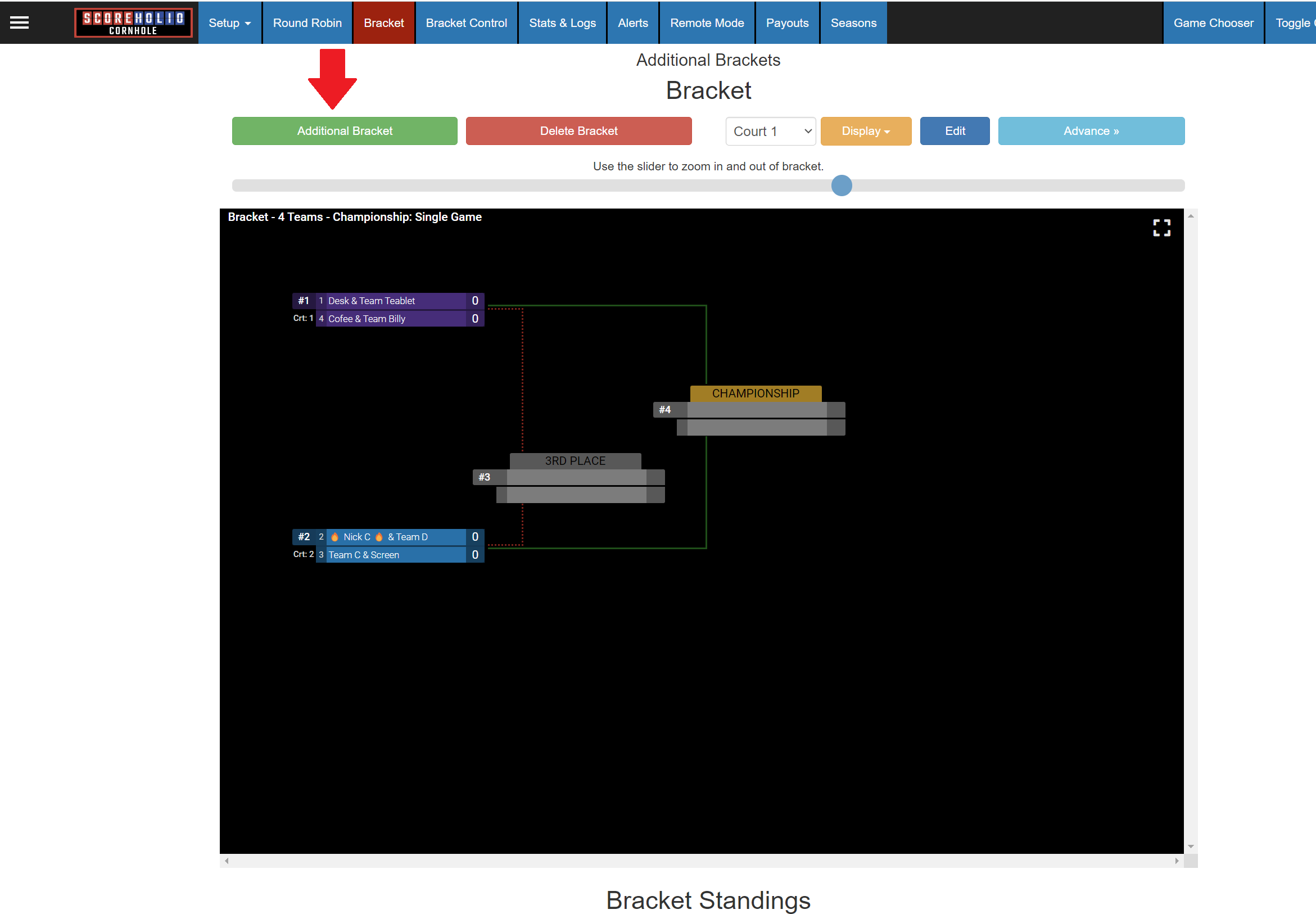 Additional Brackets are used to spin off multiple brackets after a Round Robin. Running a Switcholio and want to take the bottom half to one bracket and the top half to another? Now its easy peasy with the additional brackets button.&#x20;