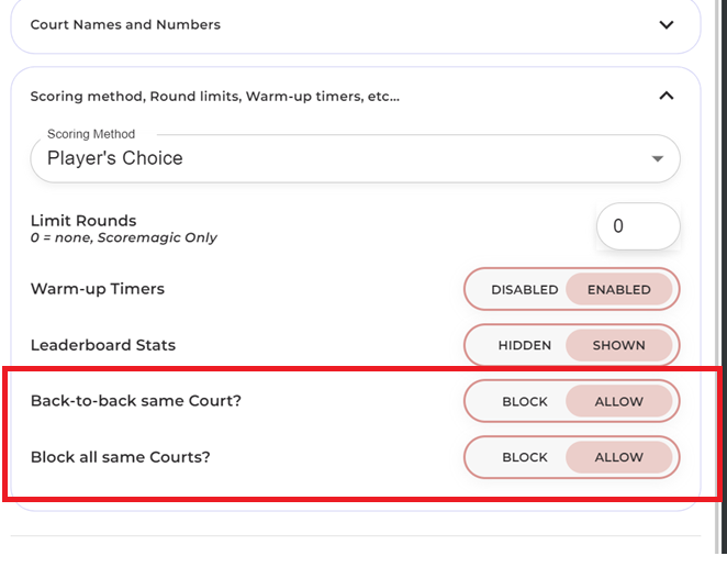 If you notice your tournament **stops auto-assigning courts**, it may be due to overly restrictive blocking. In that case: