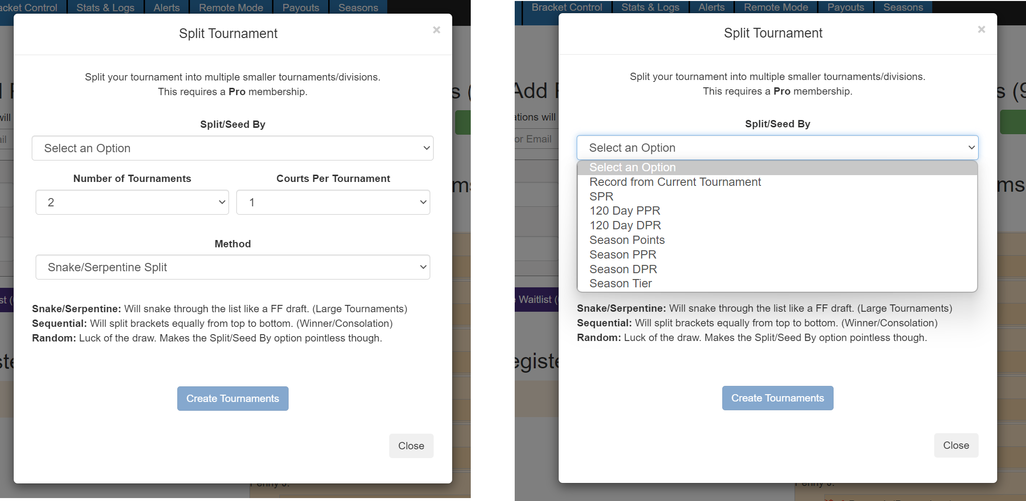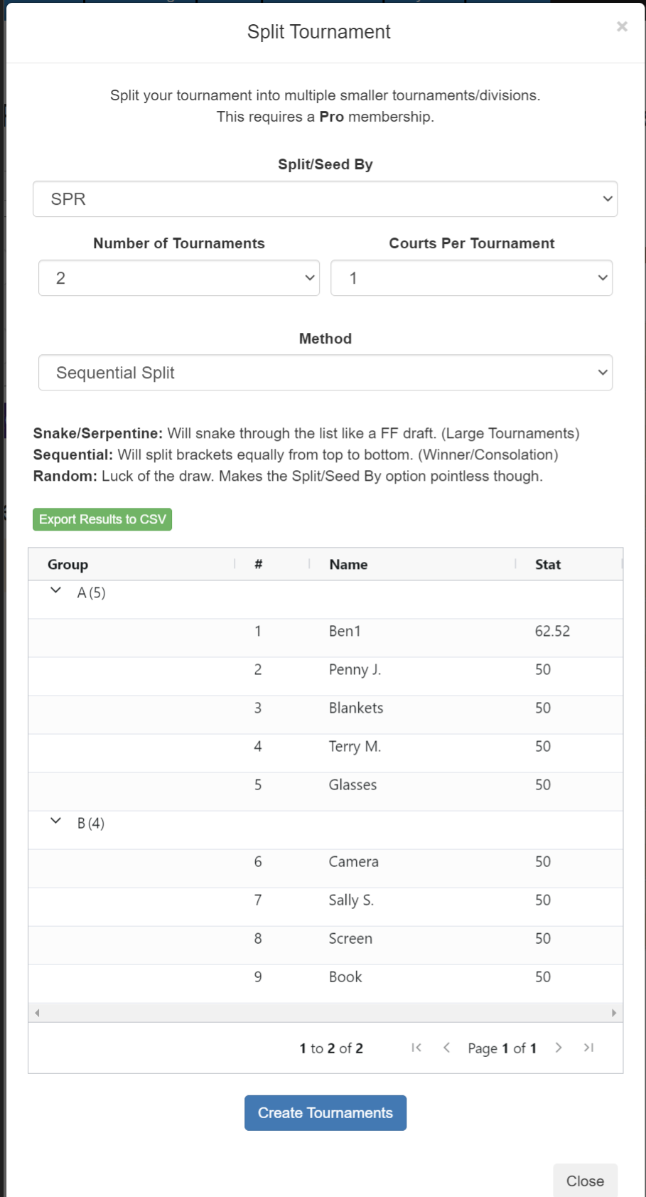 Do you ever want to have everyone sign up for one big tournament and then split it up based on skill level into multiple other tournaments? Or do you want to run pool play where the best players are spread across different pools and stay on their assigned courts?&#x20;