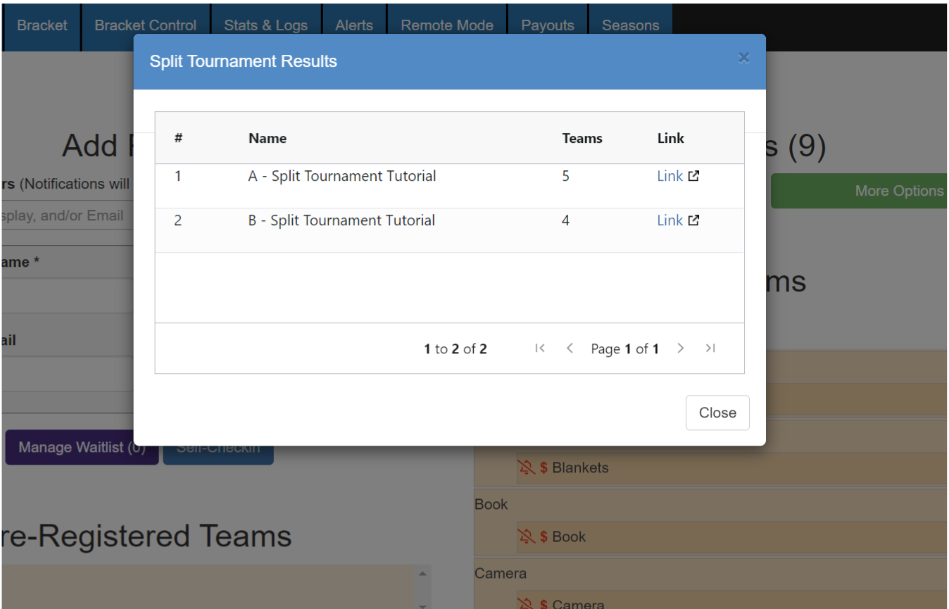The system will now create the amount of tournaments you chose into brand new tournaments. Dont worry all the players info is brought to those tournaments and their alerts will still work. They can also find the new tournaments in their MINE section on find a tournament.&#x20;