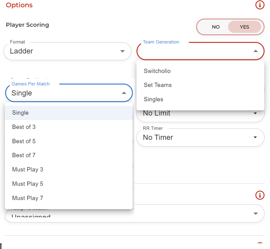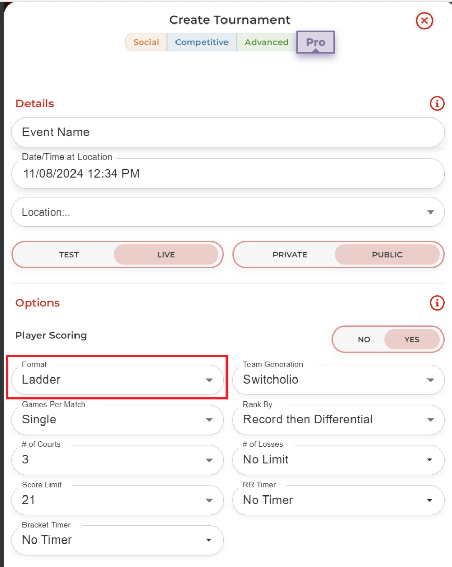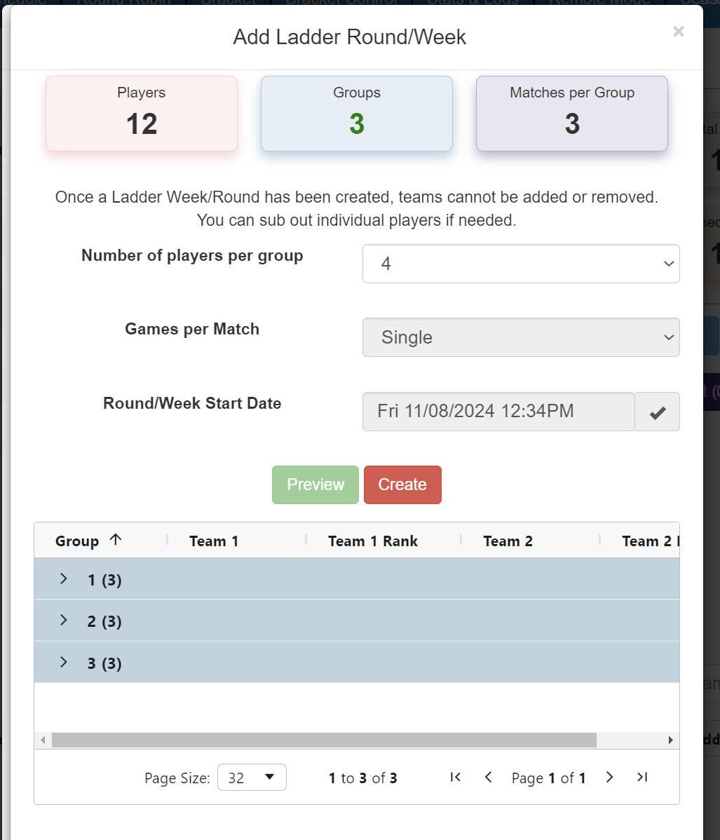 To [add players](https://docs.scoreholio.com/adding-teams) or teams to a Ladder League, head to the **Tournament Admin** section as usual. In the **Players/Teams** tab, add all participants by listing them as either individual players or teams. Then, click on each player or team name to assign an **initial ladder rank**. This rank determines which starting group the players or teams will be placed in, helping to set balanced matchups from the beginning of the league.