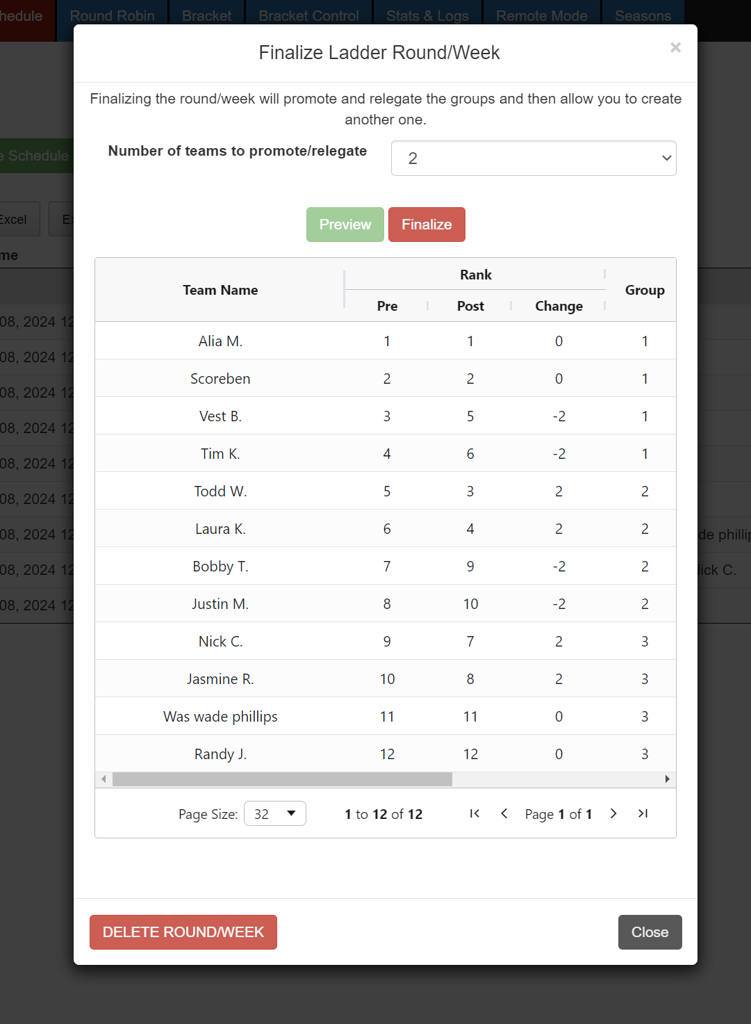 ## Thats it!!! Create your next round and go as long as you would like. Add players/teams along the way if needed.