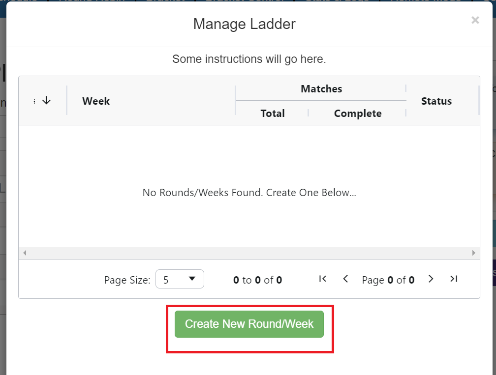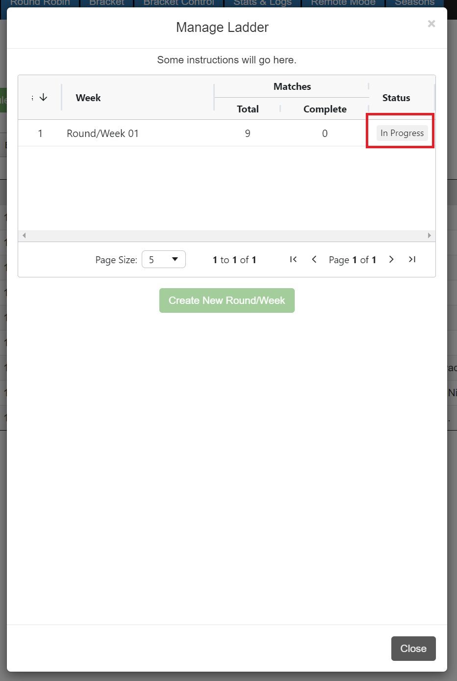 You can complete a round that is currently in progress by clicking the "in progress" button after you click manage ladder
